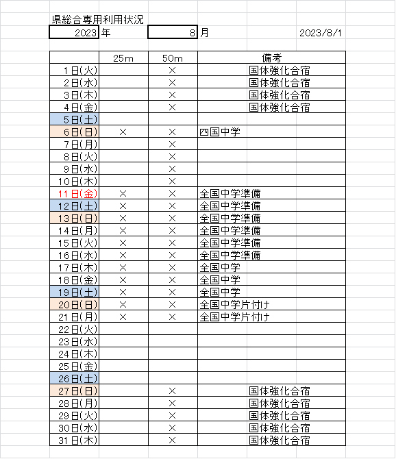 【8月県総合プール専用可能状況】