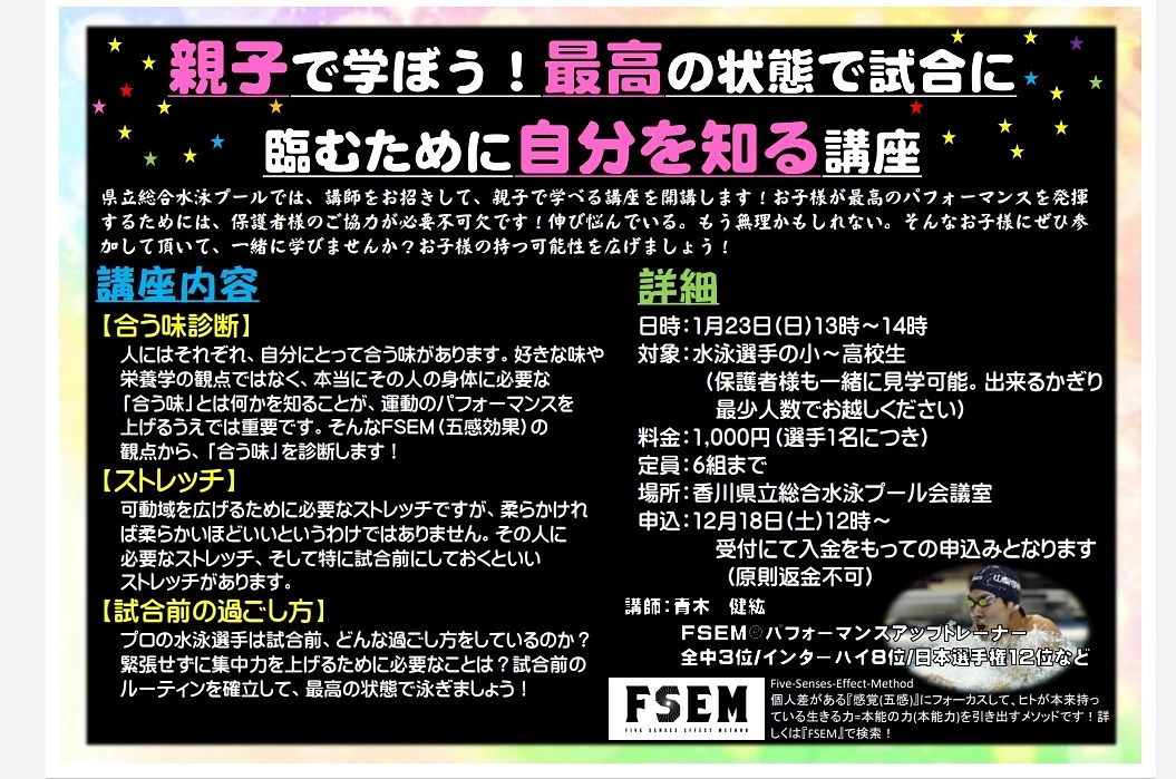 のイベントを香川県総合プールで講師をさせていただきます。
